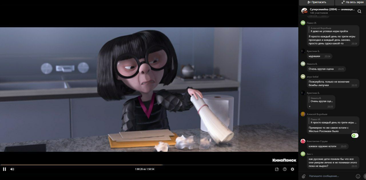 Устроили совместный онлайн-просмотр мультика с блогером Ануаром. Спустя 5 минут после начала в чат уже было не попасть. Круто!