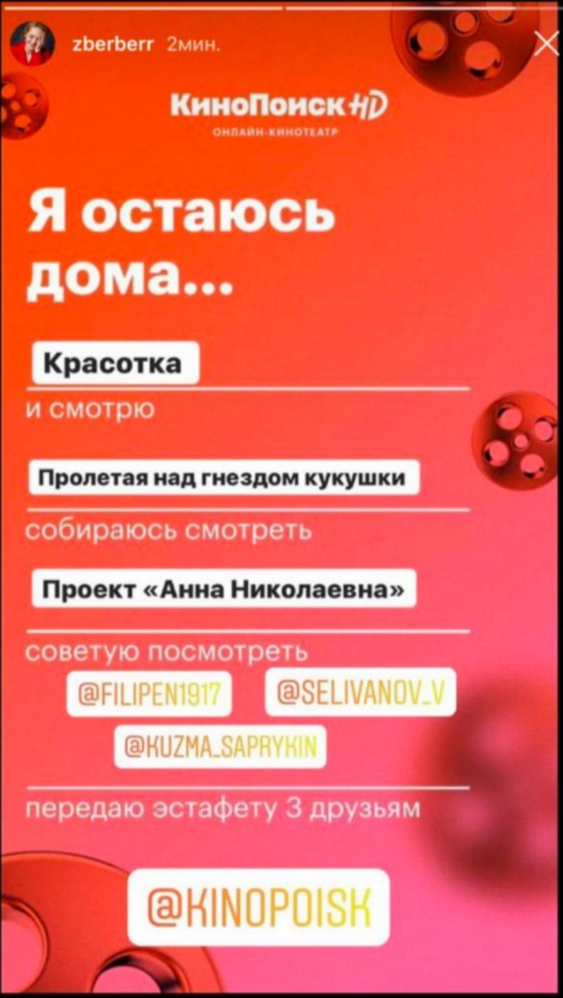 Запустили кино-эстафету. Всё просто: делаешь скрин, советуешь фильм или сериал, отмечаешь друга. И казалось бы, при чем здесь многотысячные охваты? :)